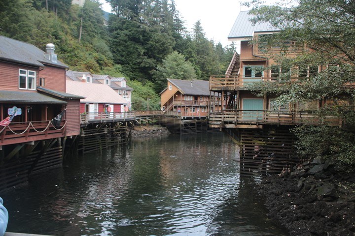 The second full cruise day, September 16, the Diamond Princess docked at Ketchikan, Alaska. We walked into the town of Ketchikan. A small island town of about 3,000 people scattered along the shore along about 30 miles of roads. Salmon fishing and tourism drive the local economy. We walked over to the Creek Street, (see second photo below), which is the former red light district of Ketchikan.