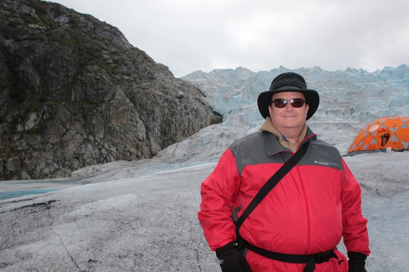 I’ll admit it now – Mark was absolutely right. He told me that being up on a glacier was something not to be missed. It was spectacular – immense – awe inspiring. We were taken by helicopter up and over the lower field of the Mendenhall Glacier. (Helicopter Tour Company: North Star Trekking did a very nice job all the way through.) As we flew up we could clearly see the medial morain, a huge dirty streak down the center of glacier. We were taken up the southern arm. Then as we came back down the north arm, we could see the meeting of the two arms and the granite mountain in between that is being rubbed away by the moving ice – causing the medial morain. Look at Mark’s photo’s below – you will be easily able to see the morain.