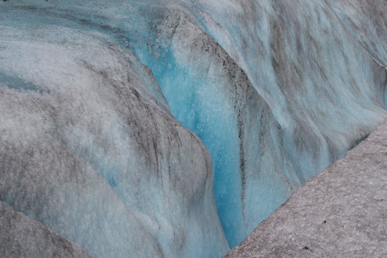 The day’s biggest surprise: how dirty the glaciers appear. Large amounts of granite rock are being pulverized as the ice moves and it does show up