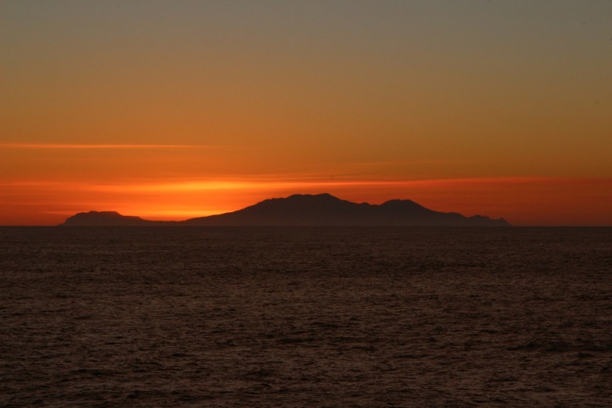 This morning we passed the Kamchatka Peninsula and several smaller islands, part of the Kuril Island chain, that look to be volcanic in origin. The Kuril Islands were Japanese territory until the end of World War II, when Russia claimed them. The fact that Japan and Russia still contest these islands is one reason Japan and Russia never signed a peace treaty at the end of WWII are technically still at war today. For more information go to: http://en.wikipedia.org/wiki/Kuril_Islands and http://en.wikipedia.org/wiki/Kuril_Islands_dispute