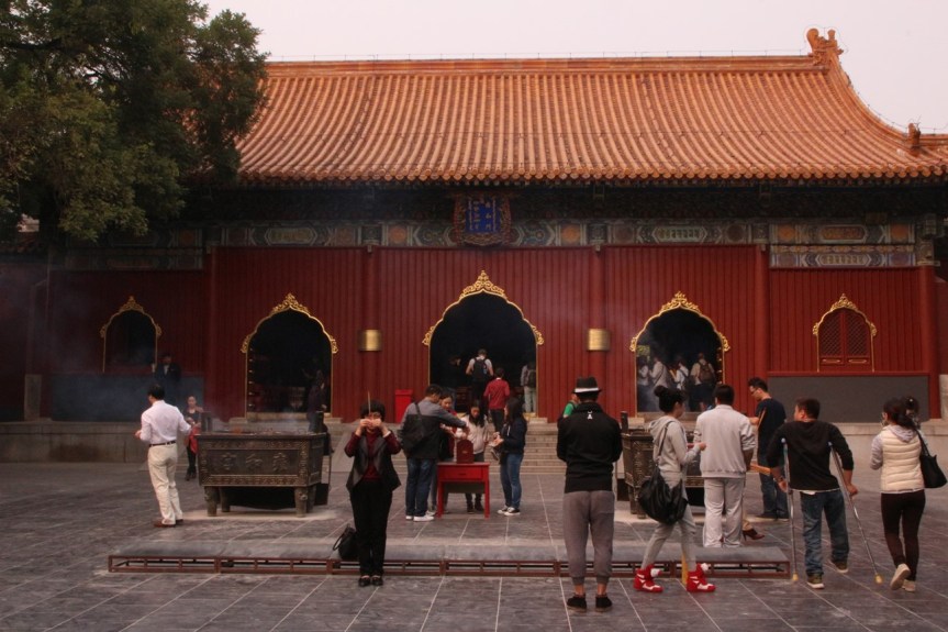 After the Confucius Temple we walked down the street to the Lama Temple. The Lama Temple is the largest and most important Tibetan Buddhist temple outside of Tibet. It was originally the home of a Qing dynasty prince before he became Emperor Yongzheng and moved into the Forbidden City. The Emperor transformed his previous house into a Tibetan Buddhist Temple, and the Royal family converted to Tibetan Buddhism as a way of forging stronger ties with Tibet and its people whom the Chinese had conquered.