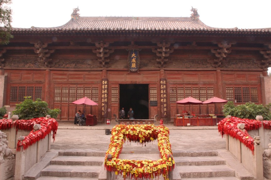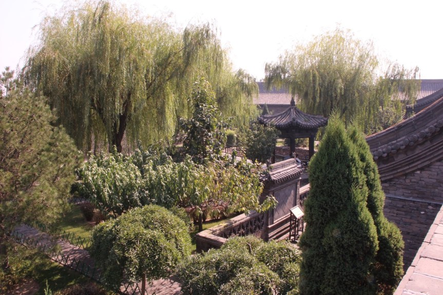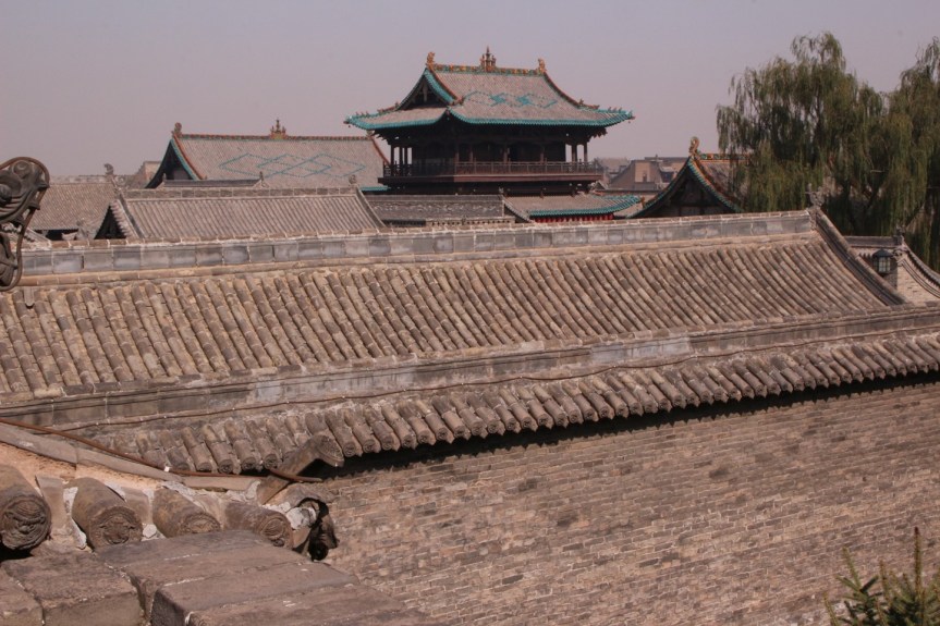 Outside of Pingyao, we also visited the Wang family complex. Built over many years, it is huge – here’s a photo with only 1 of the 3 enclosed areas – all connected by bridges. Ancestry worship was a huge theme here – something I knew little about. China has 3 – 4 family names that dominate last names. If you have 5 people together, at least one of them will be named Wang.