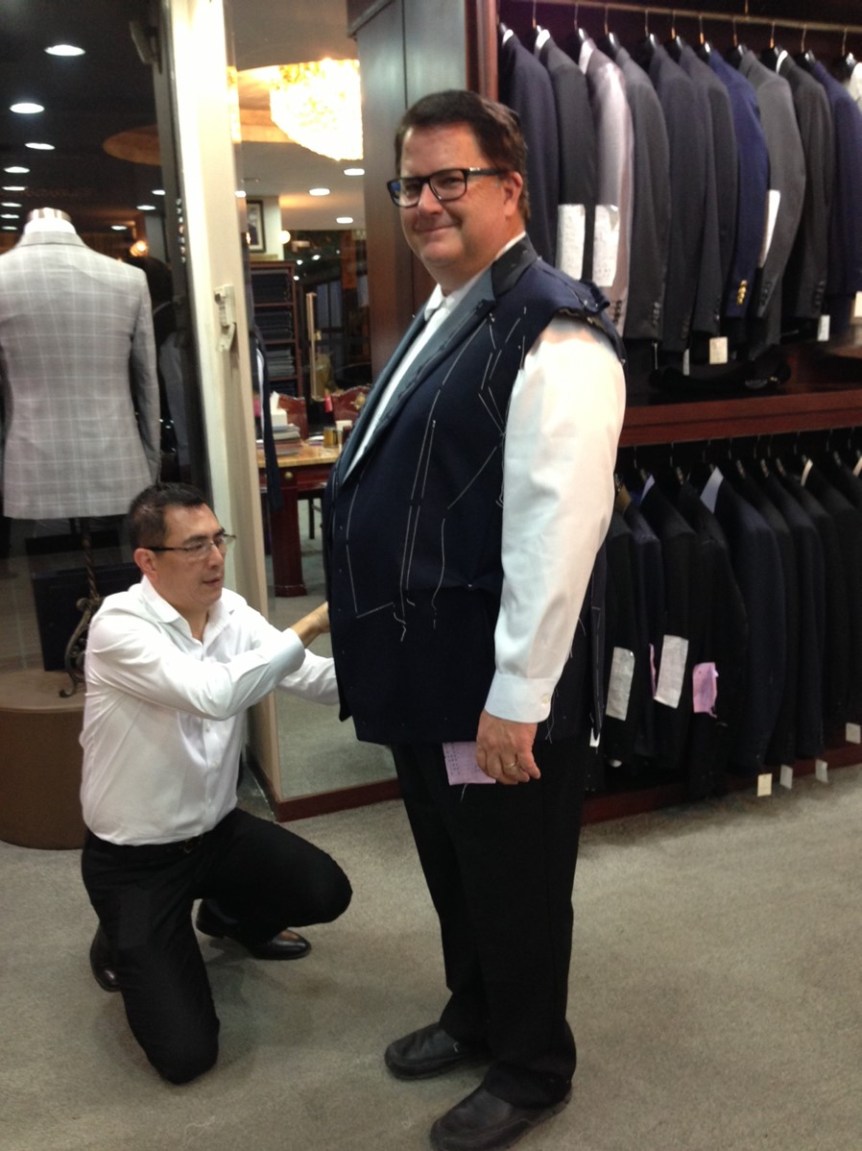 Holly very strategically suggested that at first we shop for me. Specifically, there are tailor shops all over that will custom make suits within a few days. Almost all of the shops advertise a package deal including: two suits, three shirts and two ties. Since we were in Shanghai for one day before leaving to go to Tongli and Hangzhou and returning three days later, Holly suggested we get the ball rolling, select fabric, get initial measurements, etc. and then have final fittings when we returned. At first I resisted, but actually it was fun and I’m really happy with the final product. The tailor took measurements in the early afternoon and we returned that evening to try on the pattern they had made from the measurements they took early that day.
