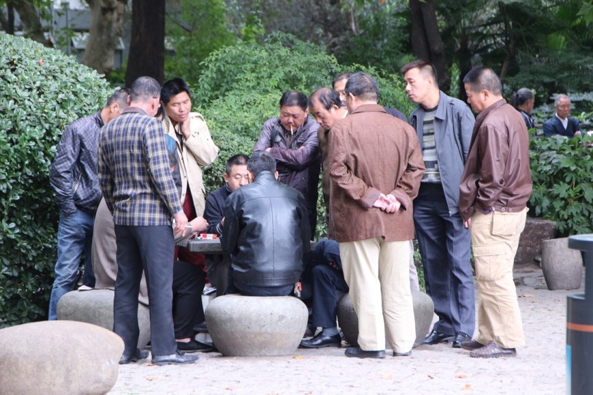 Another very common sight in China is groups of men playing cards, Chinese Chess and other games:
