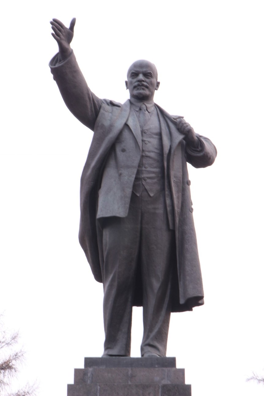 Memorial to Vladimir Lenin Anastasia pointed it out while we drove by, I dont know why that hasnt been taken down yet. Mark and I had to go back later to take this photo. The memorial and park were built on the site of a former Lutheran church, which was destroyed to build the park. (No bird perhaps the birds dont appreciate Lenin anymore either.)