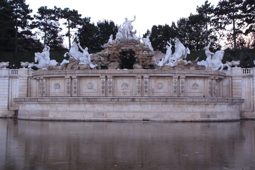 This is the Neptune Fountain in the Schonbrunn Palace Gardens, that’s ice covering the water: