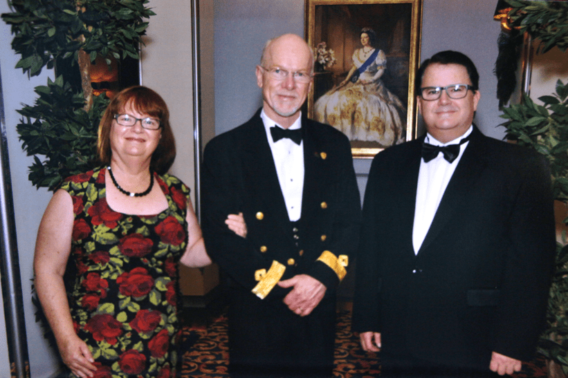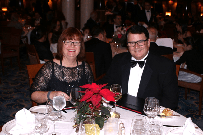 On the second formal night, the Commodore hosted a cocktail reception. Here we are with Commodore Christopher Rynd. As “Commodore”, Christopher Rynd is Cunard’s senior captain and holds responsibilities within Cunard beyond the Queen Mary 2, including for example overseeing the training of crew members.