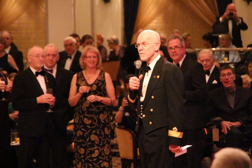 Here the Commodore address the passengers at the cocktail reception in the Queen’s Room and introduce his senior staff.