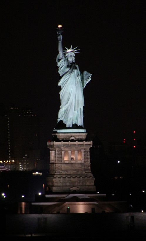 We passed by the Statue of Liberty as we entered New York harbor and of course I couldn’t help but think of all the immigrants to our country who viewed Lady Liberty as they came to our country to build new lives for themselves and their posterity in land most blessed by God with freedom and opportunity. Fortunately, our stateroom was on the port (left) side of the ship, so I was able to take photos of the Statue of Liberty from our balcony while also eating breakfast and preparing to disembark the ship.