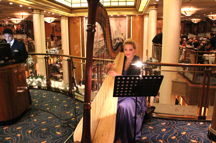 Another nice feature of the Britannia dining room was the harpist’s playing during our evening meal.