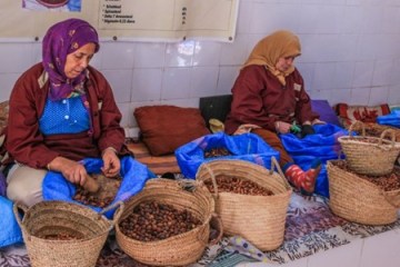 Shortly after the Goat Tree stop, we stopped again at a small factory where they process the nuts from Argon trees into food, oil and cosmetics. They have these ladies shelling and grinding the nuts the old fashioned way, but my cynical side tells me that there is a larger scale production somewhere else.
