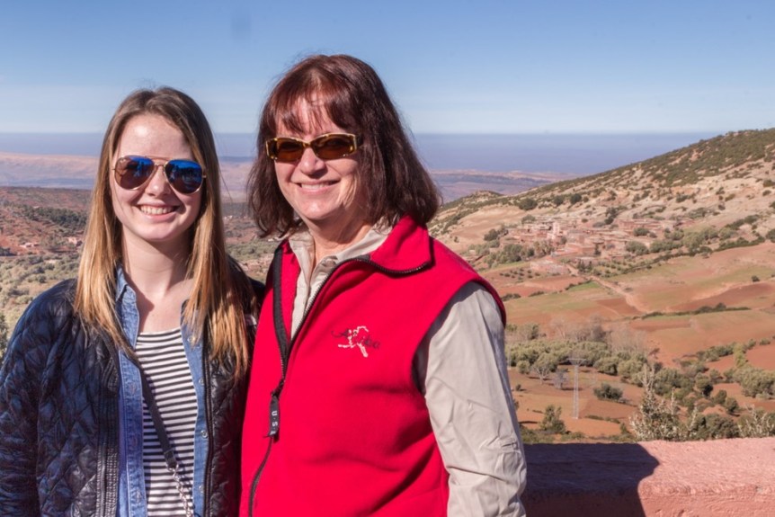 Rebecca and Kate in front of a portion of the Atlas Mountains.