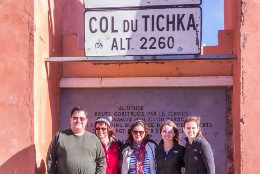 We couldn’t resist taking a family picture under the Tichka Pass sign. Altitude is expressed in meters: