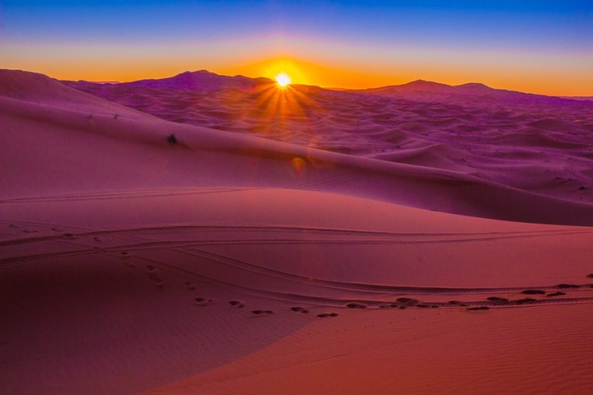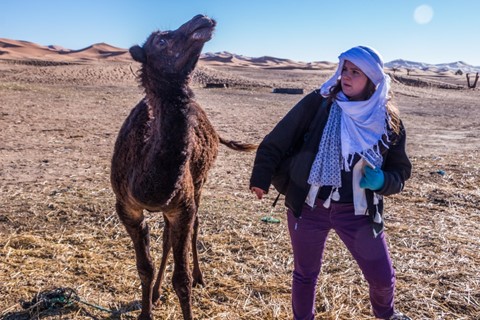 After spending New Year’s Eve camping on the Erg Chebbie sand dunes, our camels retraced their steps and took us back to our departure point, about a 1.5 hour camel ride from our camp to Merzouga.