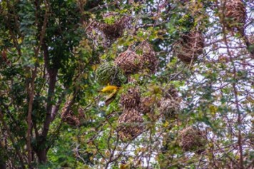 Thank goodness we only spent one night at this campsite. The camp was swarming with “lake flies”. The bathrooms had piles of dead flies. It is hard to describe how thick the flies were. I took a picture of one of the light fixtures that was covered with flies. I also took this photo of these sphere shaped bird nests. They looked like really big Christmas ornaments.