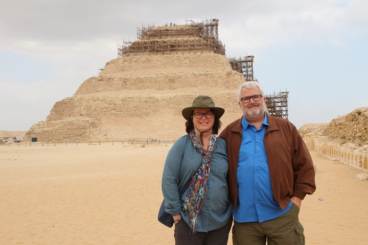 For our time in Cairo, we hired Tamer Mina to be our driver and guide. Tamer had met us at the airport the night we arrived and drove us to our hotel, the Hilton Zamalek. The next morning Tamer picked us up in his car and drove us to Saqqara in the desert on the west side of the Nile River which was the necropolis (cemetery) for Memphis the ancient capital of Egypt. Saqqara was an active burial site for 3,500 years and covering 7 kilometers is Egypt’s largest archaeological site.