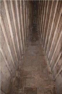 The Step Pyramid is surrounded by a vast funerary complex, including the Hypostyle Hall. The 40 pillars in the corridor are “bundle columns”, ribbed to resemble a bundle of palm or papyrus stems.