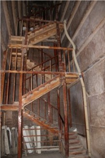 The burial chamber inside the Red Pyramid is very plain, but has tall vaulted ceilings. The ancient Egyptians made a vaulted ceiling that supported the weight of the pyramid, by placing stones at each layer a little closer. To allow visitors to get to the final chamber, they have built this wooden staircase. It is amazing that 5,500 years ago, people could build large rooms inside massive pyramids.