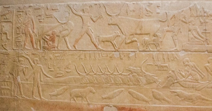 From: http://www.osirisnet.net/mastabas/kagemni/e_kagemni_01.htm – Here’s some information about who Kagemni was: In the first years of the reign of Teti, first king of the 6th Dynasty (c. 2321-2290 B.C.), an official named Kagemni-Memi was appointed to the rank of Chief Justice and Vizier, the highest post in the bureaucracy of Old Kingdom Egypt. Teti had good reason to trust his new vizier because Kagemni was a son-in-law of the king through marriage to “The king’s daughter…” Thanks to his new position and his royal connections, Kagemni was able to organize in the necropolis of Saqqara the construction of a sumptuous tomb for himself, situated close to his king’s pyramid. For it, he would have the best workshops and workers of the country, which explains the extraordinary quality of the decor which decorates the walls of his mastaba.