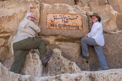 We may not be allowed back into Egypt. We took photos inside the Great Pyramid (not allowed and cameras may not be brought inside). But everyone takes photos on their smart phone which are not confiscated as one enters the pyramid. Also, climbing is not allowed on the pyramid, but….