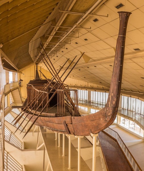 The Cheops Boat Museum: (from Lonely Planet: Egypt) “Immediately south of the Great Pyramid is this fascinating museum with exactly one object on display: one of Cheops five solar barges (boats), buried near his pyramid, and unearthed in 1954. This huge stunning ancient wood vessel, possibly the oldest boat in existence, was carefully restored from 1200 pieces of Lebanese cedar and encased in this museum to protect it from the elements. Visitors to the museum must help this process by donning protective footwear to keep sand out.”