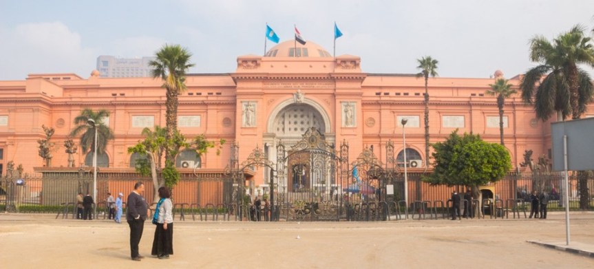 The Egyptian Museum is located in downtown Cairo on the north side of Midan Tahrir aka Tahrir Square. (Tahrir Square was the center of mass protests during the revolution which began January 25, 2011 that brought down President Mubarak. During the chaos, some of the museum’s collection was either damaged or stolen. The museum’s gift shop was vandalized and has never been reopened.) The museum’s building was erected in 1902 and in many ways shows its age. We visited other modern museums in Egypt with better lighting and displays, and Egypt is currently building a new museum closer to Giza that will one day house their treasures.